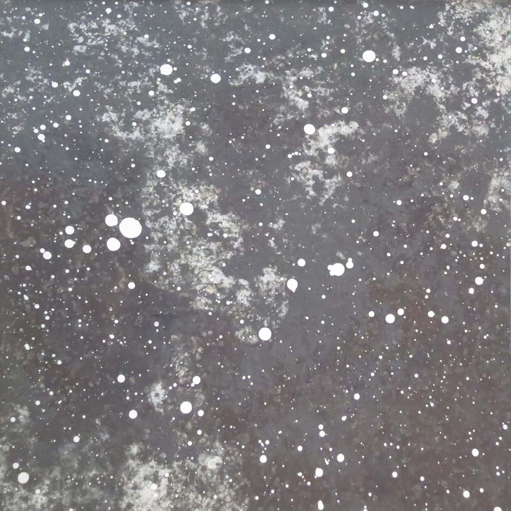 Antique silvered mirror glass with multiple types of oxidisation giving soft coloured hues and splatter.