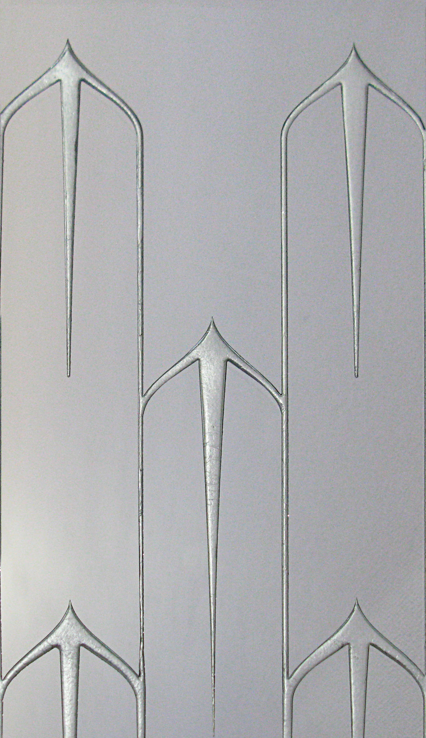 Carved sandblasted relief glass with silver design on a mirror background.