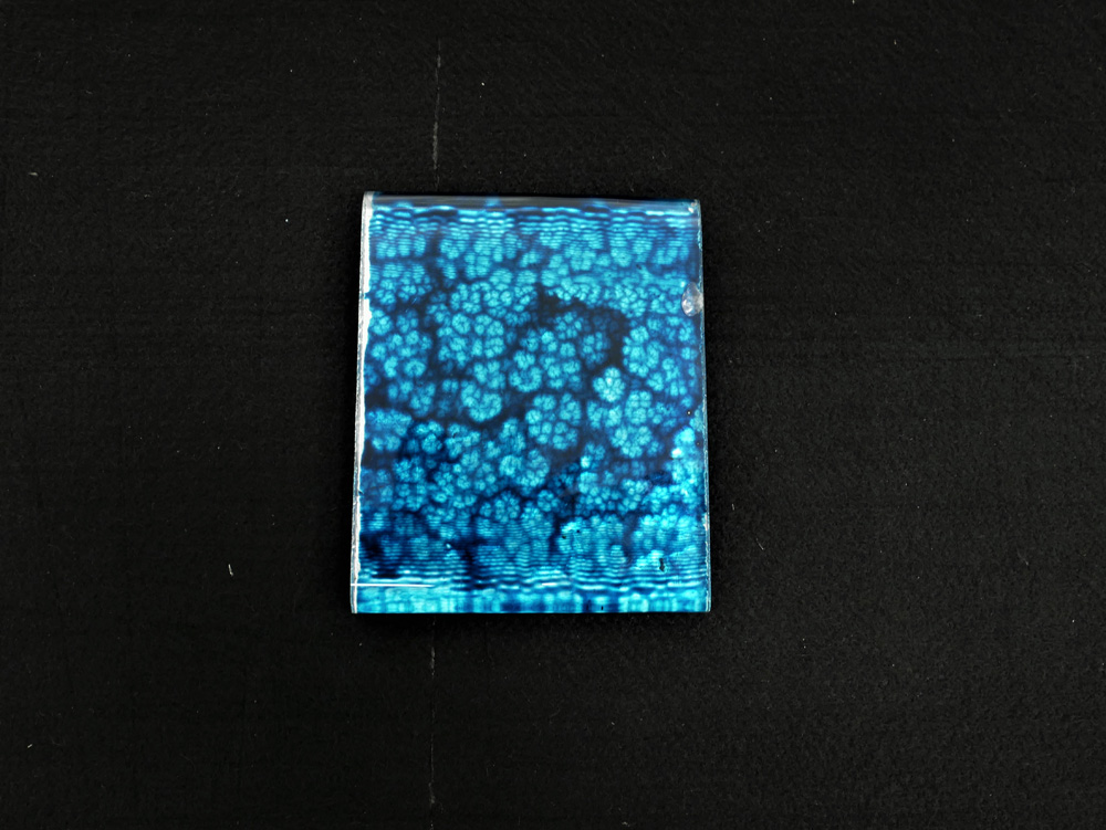 Cast glass back painted in mottled blue