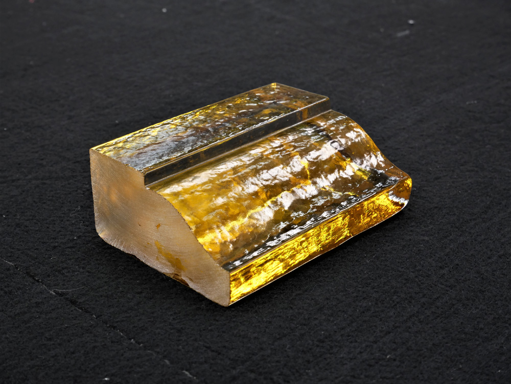 Cast glass back painted in amber