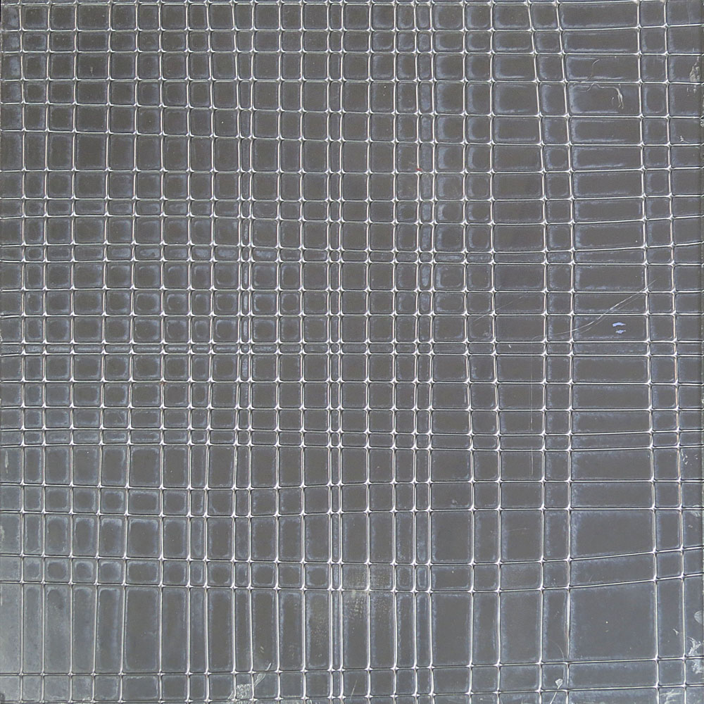 Silvery grey background with raised net like grid pattern.