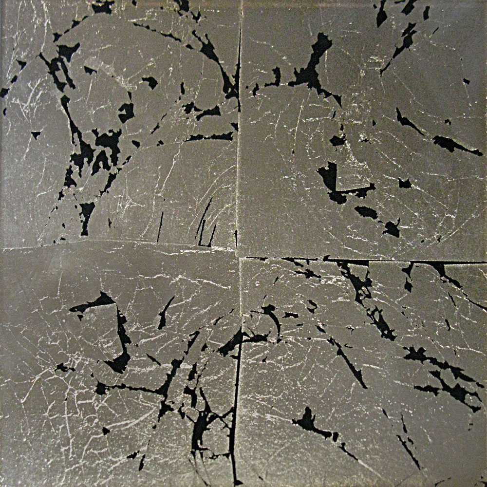 distressed gold leaf laid on the back of glass with a black background.