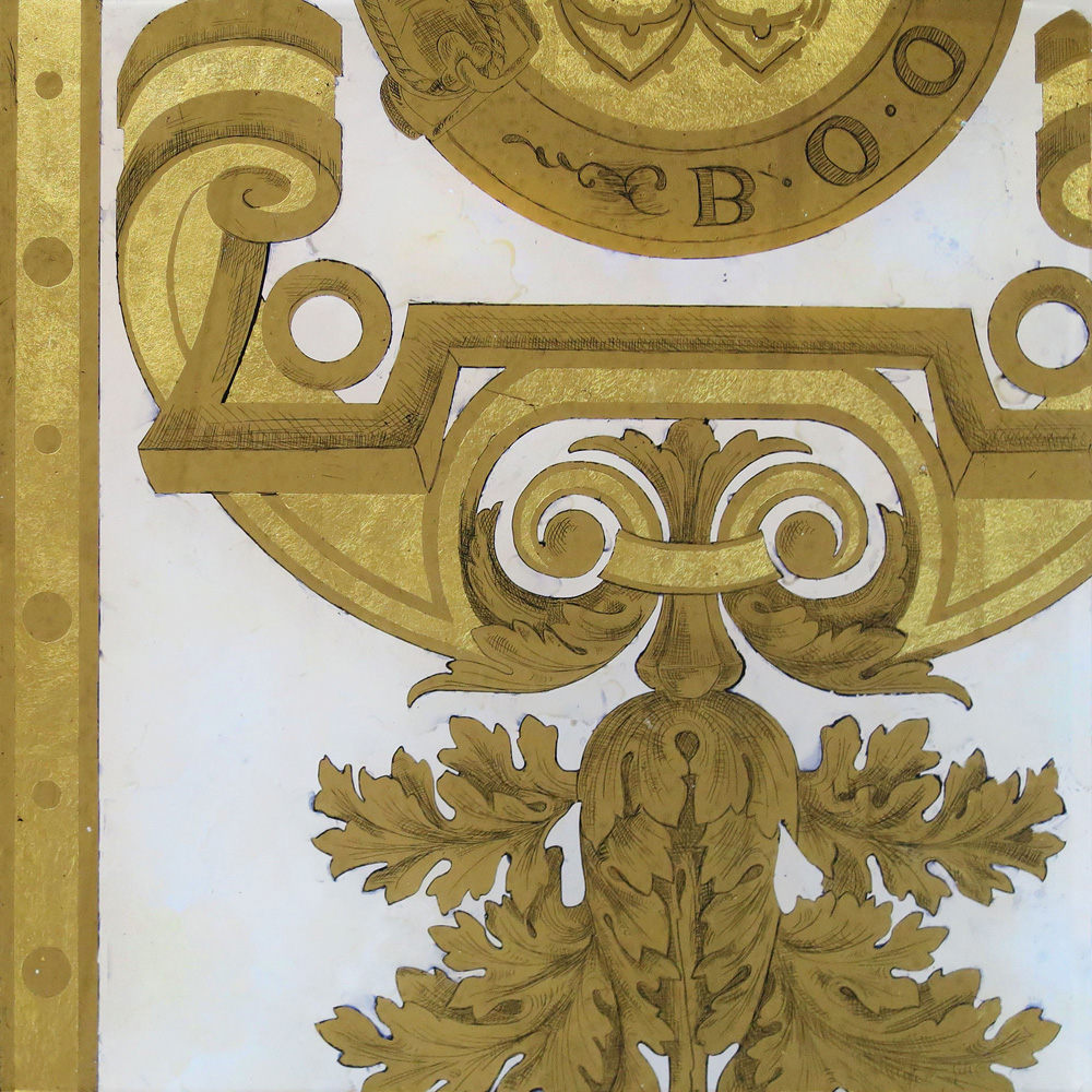 Gilt glass design with white painted background