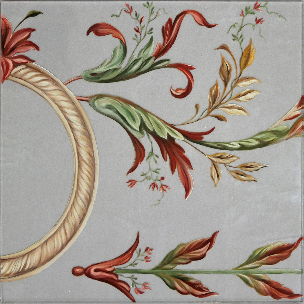 We make both traditional and highly contemporary eglomise glass. Our glass is used in a wide variety of ways, walls can be covered to create a huge visual impact in the form of a mural or repeating patterns like glass 'wallpaper', a number of small pieces can also be used in a patterned decorative scheme. Cupboard doors, ceilings, and furniture can all benefit from the application of decorative eglomise glass either as a feature, such as a table top, or covered entirely with glass.