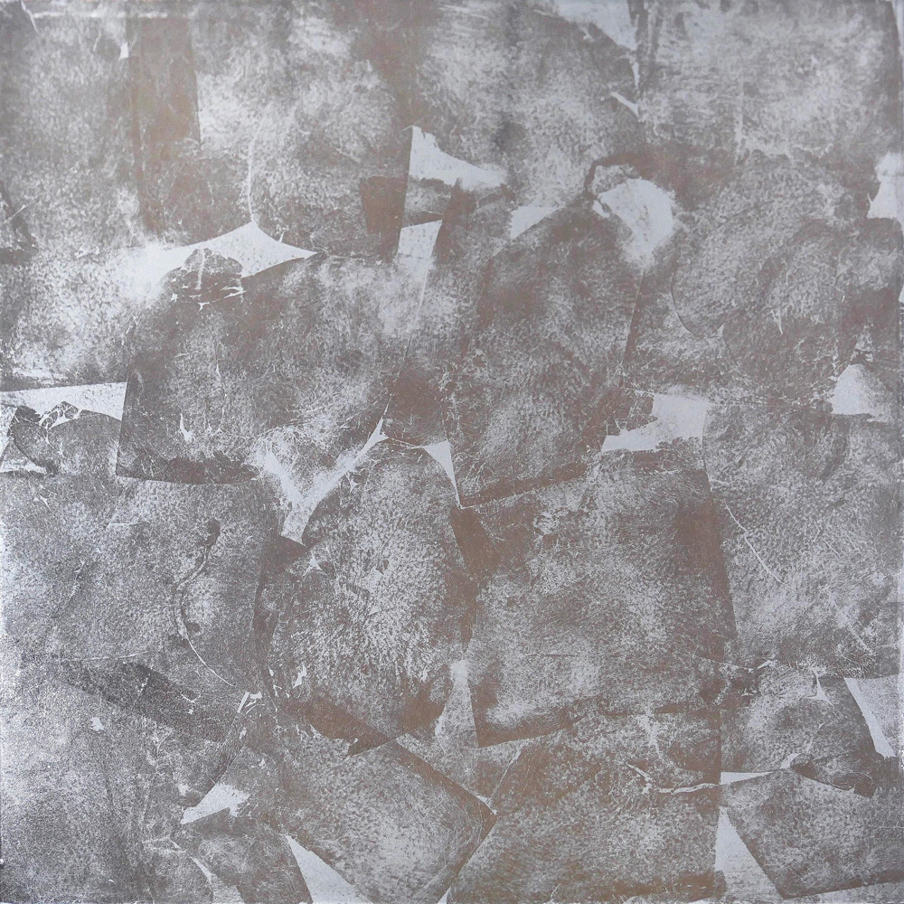 White gold behind glass with antiqued leaf decoration applied by hand.