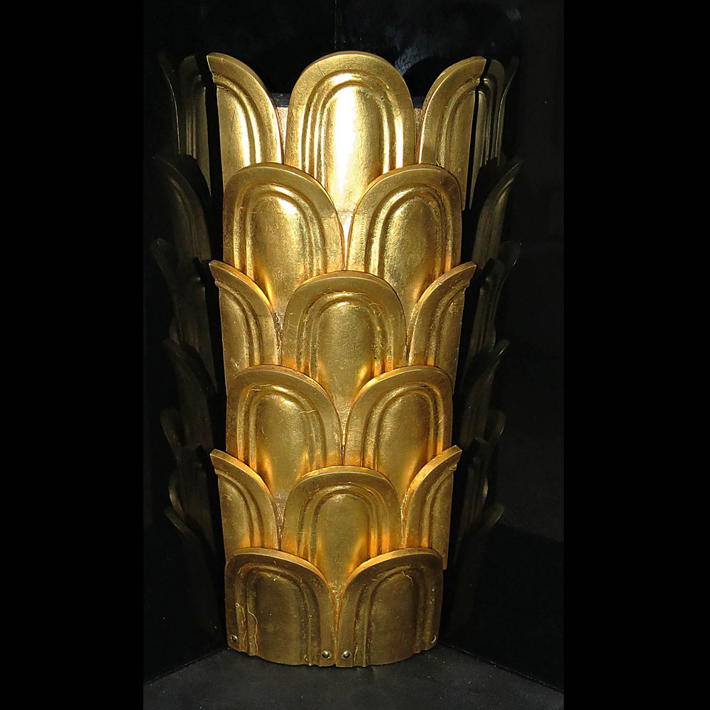 Carved and cast water gilt art deco pilasters.