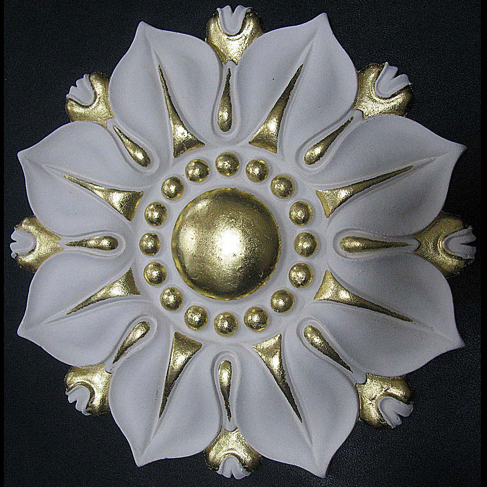 Ornamental palsterwork with gold leaf applied to highlights.